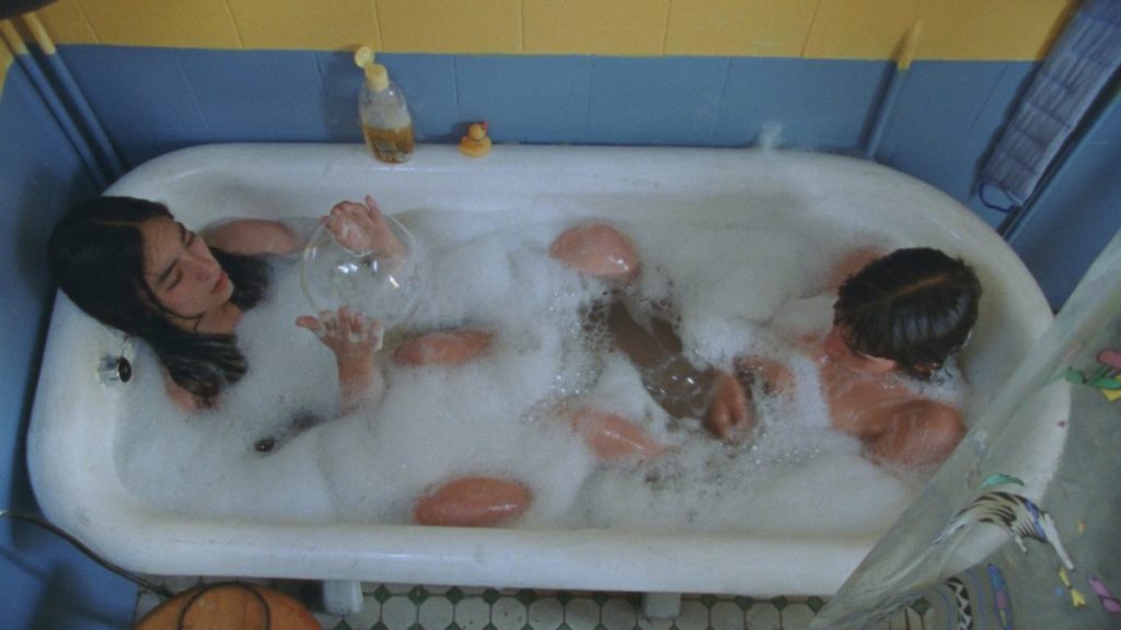 A inicios de los años dos mil, Maryse Sistach filmó otra escena de baño que se fijó en la mente de los espectadores. Son las estudiantes de secundaria de Perfume de violetas (2001) que, aprovechando la ausencia de la madre de una de ellas, comparten la tina y un baño de burbujas que se convierte en un juego sensual inocente que bordea el erotismo propio de su despertar sexual. La inclusión de este mobiliario al interior de la habitación acota la diferencia de clase entre las compañeras, hecho que se resume en la sorpresa del personaje de Ximena Ayala al descubrir la tina, mueble que no existe en su casa, y pedir permiso a su amiga para bañarse en ella.