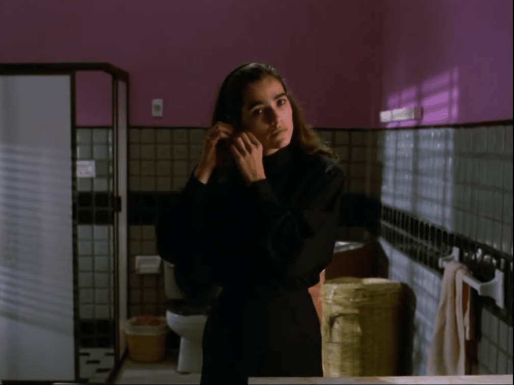 El momento cumbre del cuarto de baño en el cine mexicano llega con una de las apuestas más arriesgadas de Hermosillo. Intimidades en un cuarto de baño (1989) es un ejercicio formal temerario, experimento original, en el que la cámara, por otro lado inmóvil, está situada en el lugar del espejo, encima del lavabo. El cuarto de baño es el sitio de la soledad, del desahogo, donde todos los personajes pasan sin ser vistos, excepto por la cámara-espejo que los encuadra, confronta y confiesa, como solo puede ocurrir en un lugar vedado al exterior.