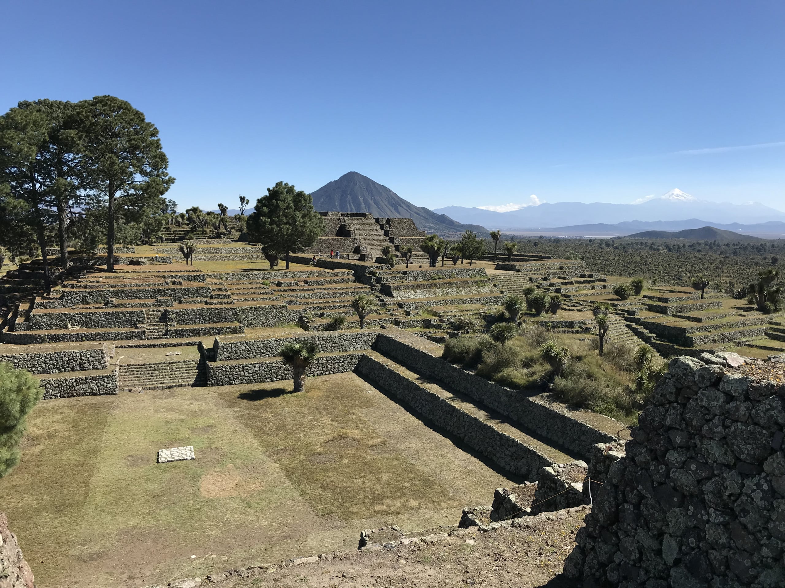 Ahorraremos tránsitos en la narrativa, pero el camino terminará por ubicarnos frente al conjunto que inicia con el juego de pelota 7. En cuanto a escala, secuencia en la dimensionalidad de los espacios, y los acentos que la naturaleza aporta, donde ahora las yucas ceden protagonismo a los pinos, es uno de los sitios más ricos de toda la ciudad en suma de experiencias y sensaciones.