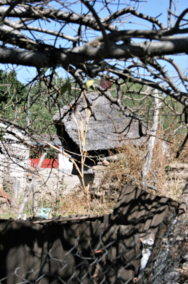 La gran cazuela no representa el fin de la construcción. Para cubrir el grano y protegerlo de la lluvia, el sol, los pájaros, es necesaria una techumbre, cerrar este gran nido. La techumbre se hace con un doble tejido, un enramado de cañas y ramas constituye una solida red sobre la cual, también con zacate, ese pasto duro y altamente fibroso, se van tejiendo varias capas de grosor suficiente y pendiente adecuada para que el agua de lluvia escurra por la superficie sin penetrar al interior, ya que, de hacerlo, pudriría todo el grano almacenado. La cubierta presenta un nuevo orificio, mucho más grande que el del basamento de piedra, por donde se alimentará al contenedor con el producto. Su ubicación justo donde se toca la cubierta con el gran cuenco de tierra y zacate, asegura que no se rebase la línea de contención más arriba, manteniendo un espacio ventilado como parte del sistema de conserva.