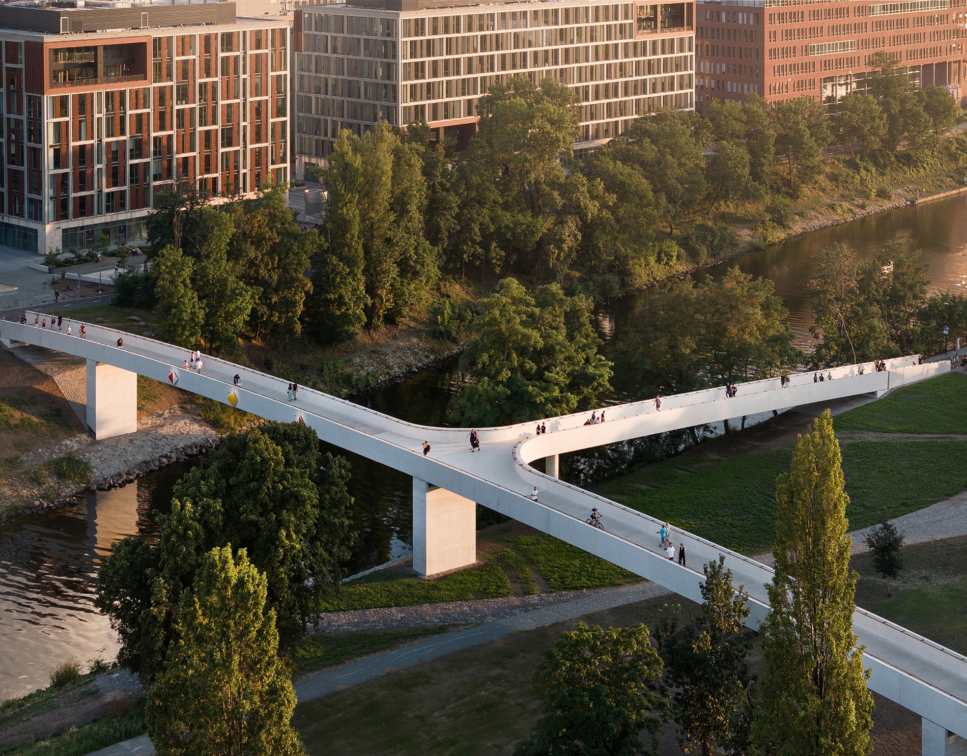 La infraestructura industrial también ocupa un lugar relevante dentro de la lista. En Vietnam, Urban Farming Office integra producción alimentaria en el lugar de trabajo, mientras The Plus establece nuevos estándares de sostenibilidad para la fabricación en madera. En China, Shenzhen Energy Ring transforma una planta de valorización energética en un equipamiento con acceso público y funciones educativas. En Europa, el Štvanice Footbridge emplea hormigón de ultra alto desempeño para crear una conexión peatonal y ciclista ligera y duradera.