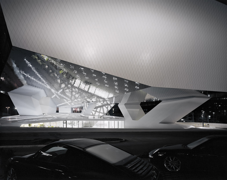 El Museo Porsche en Stuttgart, de los arquitectos austriacos Roman Delugan y Elke Delugan-Meissl busca la posición de representar exclusividad sin exclusión. El concepto central del proyecto fue la traducción de la marca versátil al lenguaje de la arquitectura, de aquellas condiciones específicas que la marca transmite espacial y sensualmente a los visitantes. Conducción y velocidad pueden ser experimentadas tanto en la configuración del edificio como a través del medio espacial. El museo es un lugar abierto, claramente definido. La experiencia y la oportunidad de experimentar fueron los principales parámetros de diseño mediante respectivas asignaciones espaciales en el concepto arquitectónico. La dicotomía aparente de la forma arquitectónica es la respuesta adecuada a la función del edificio y la posición excepcional de sus exhibiciones. El diseño conceptual del museo ilustra enfoque de los arquitectos de tratar los edificios como organismos interactivos, donde la comunicación forma parte de un todo.