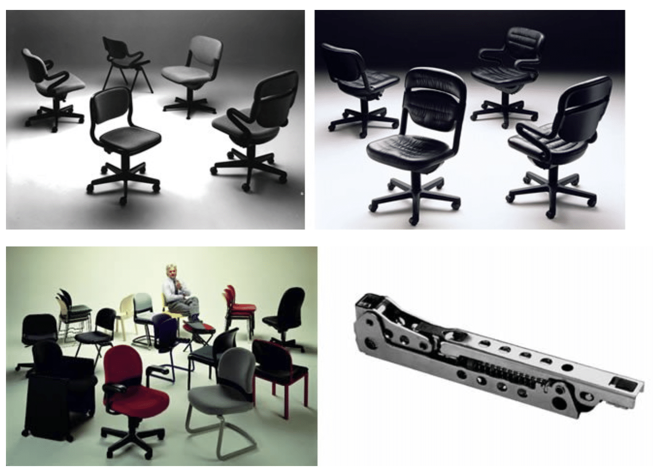 Más adelante diseño, de la mano de Emilio Ambaz, una serie de sillas ergonómicas para oficina. De estética revolucionaria y llenas de ingeniosas soluciones técnicas las sillas fueron también un éxito. Para esta serie Giancarlo decidió no venderle el diseño a una sola firma y en cambio controlar el a los socios que harían el ensamble final de sus productos y la venta por mercados. El controlaba la producción de los componentes y las regalías. Este modelo, en su momento, nos pareció atractivo y entramos en negociaciones con el para ser su distribuidor para México.