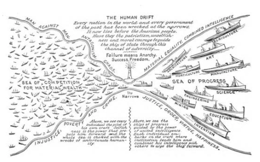 Un objeto tan mínimo fue fundamental en muchos hogares y monopolizó el mercado de las afeitadoras, resultado contraproducente a las ideas políticas de King Camp Gillette. Urbanista utópico, King Camp Gillette imaginó en su libro The Human Drift una ciudad en las Cataratas del Niágara con grandes edificios de departamentos que contuvieran sus propios servicios, una comunidad con igualdad material a la que no llegaría el crimen ya que la competencia capitalista sería desconocida.