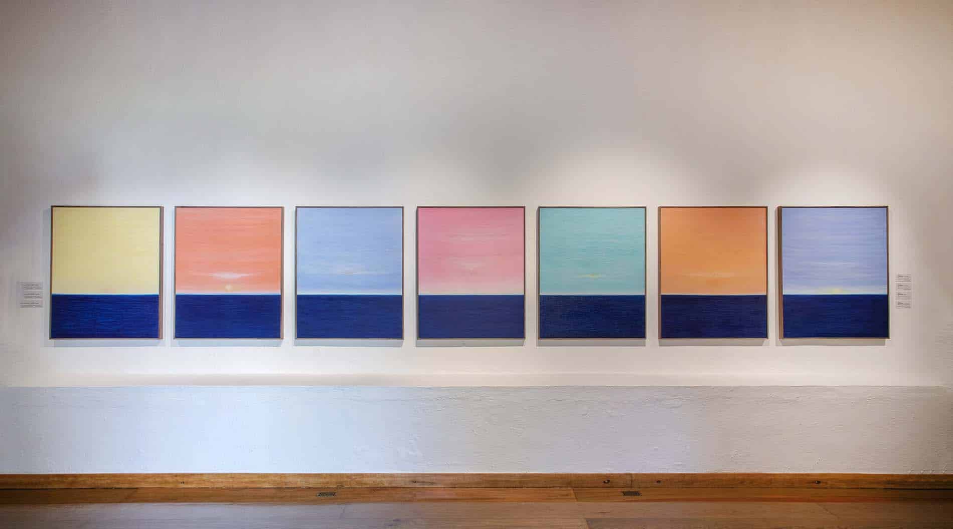 En distintos formatos y visualidades simultáneas, apacibles y generosos, se trata de paisajes que conservan el pulso del sosiego sin inquietar ni mostrarse exuberantes. Como todo registro de la memoria, los paisajes se aferran a una infancia y nunca se desprenden de ella. En sitio, a partir del texto curatorial, “la obra de Yoab Vera se construye a partir de signos y fenómenos aparentemente elementales: soles, atardeceres, flores, horizontes. Sus obras se sitúan entre lo concreto y lo abstracto; no describen un sitio reconocible, pero tampoco se desprenden del mundo sensible. Estas pinturas invitan a ensayar una política de la pausa, a reaprender el tiempo y a pensar, desde la quietud, la experiencia misma de la existencia”.