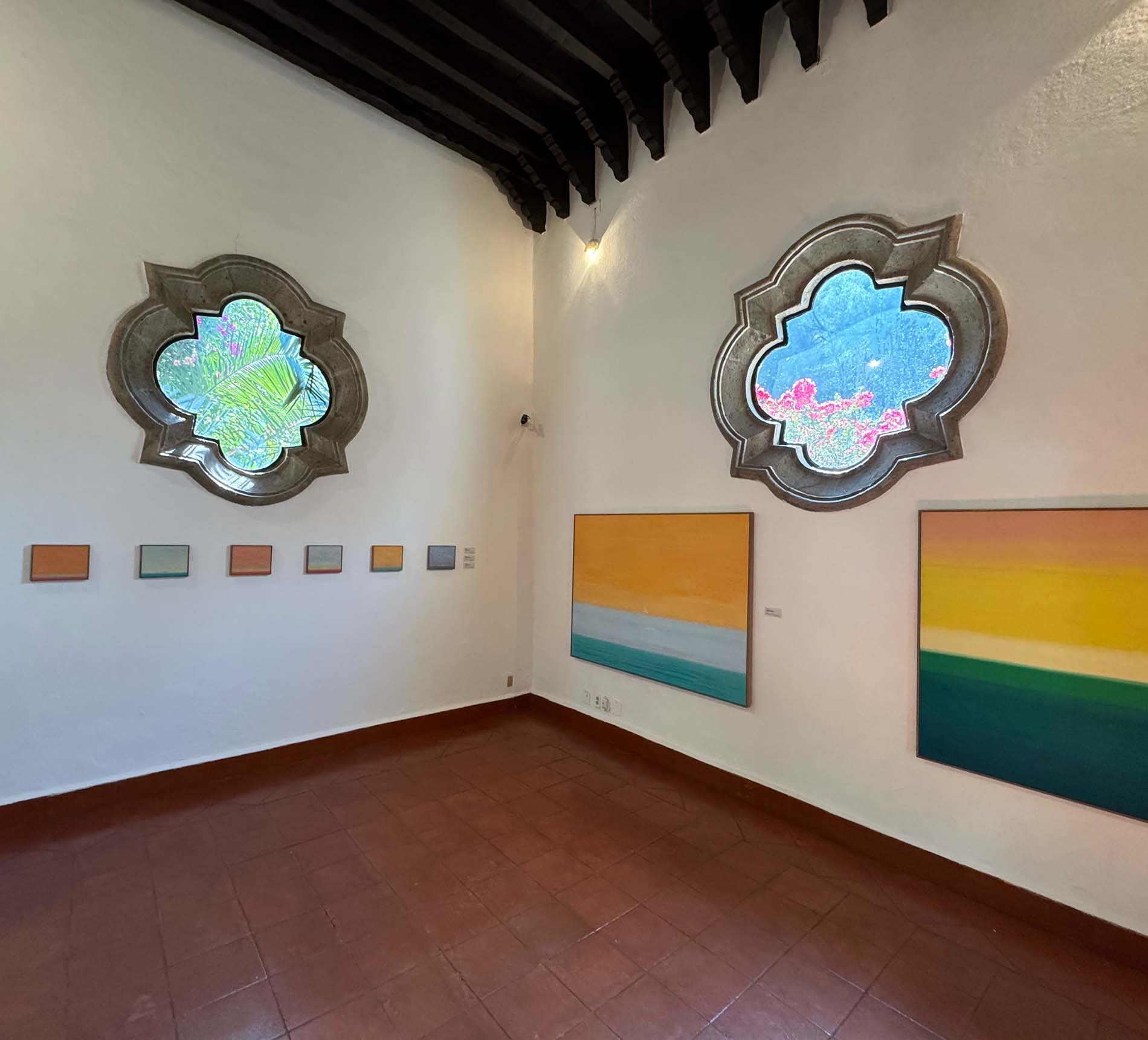 La obra reunida se apropia de los espacios del museo entre jardines, corredores, salas y recovecos en donde se muestra lo extraordinario del poder contemplativo. El diálogo con la obra de Rivera, marcada por sus últimos años de vida en la casa de Dolores Olmedo en Acapulco (“La Casa de los Vientos”), manifiesta una idea de calma a la orilla del mundo con luminosos atardeceres o la intimidad de pétalos, hojarascas y florestas.