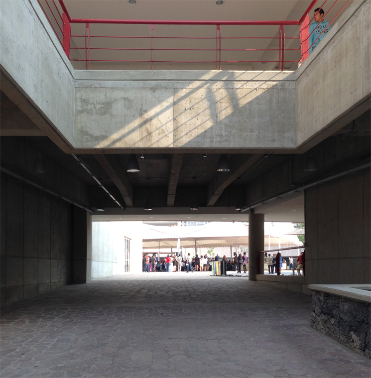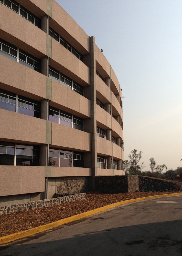 El Centro Educacional Albatros (1971), la Secundaria Cumbres (1974), la Universidad Autónoma del Estado de Hidalgo (1975) o la Universidad Anáhuac (1976) de Imanol Ordorika serían buenos ejemplos para resolver un proyecto para una sede de posgrado. Y si bien hace poco se dieron a conocer proyectos de Google (NBBJ) y Apple (Foster & Partners) con base en un partido arquitectónico radial, aquí la geometría es poco entendible por la monotonía de su intención; una simulación creativa con revestimientos añadidos. Dejemos de lado el aumento del presupuesto en el proyecto –tres veces la cantidad inicial–, el resultado final de los acabados o por qué hay una escalera roja metálica en forma de gusano –cerrada– para subir a una azotea que no se puede ocupar. A 60 años de la inauguración de Ciudad Universitaria, ¿qué pasa con el crecimiento y desarrollo de los nuevos proyectos en el campus de la universidad?, ¿cómo se gestionan y deciden?, ¿por qué ocurren aterrizajes forzados de obras descomunales como éstas?, ¿por qué si tenemos una destacada Facultad de Arquitectura no se convocan concursos que vinculen a los maestros con los estudiantes –y futuros postulantes a maestría y doctorado que ocuparán los espacios– como ocurrió en 1952?