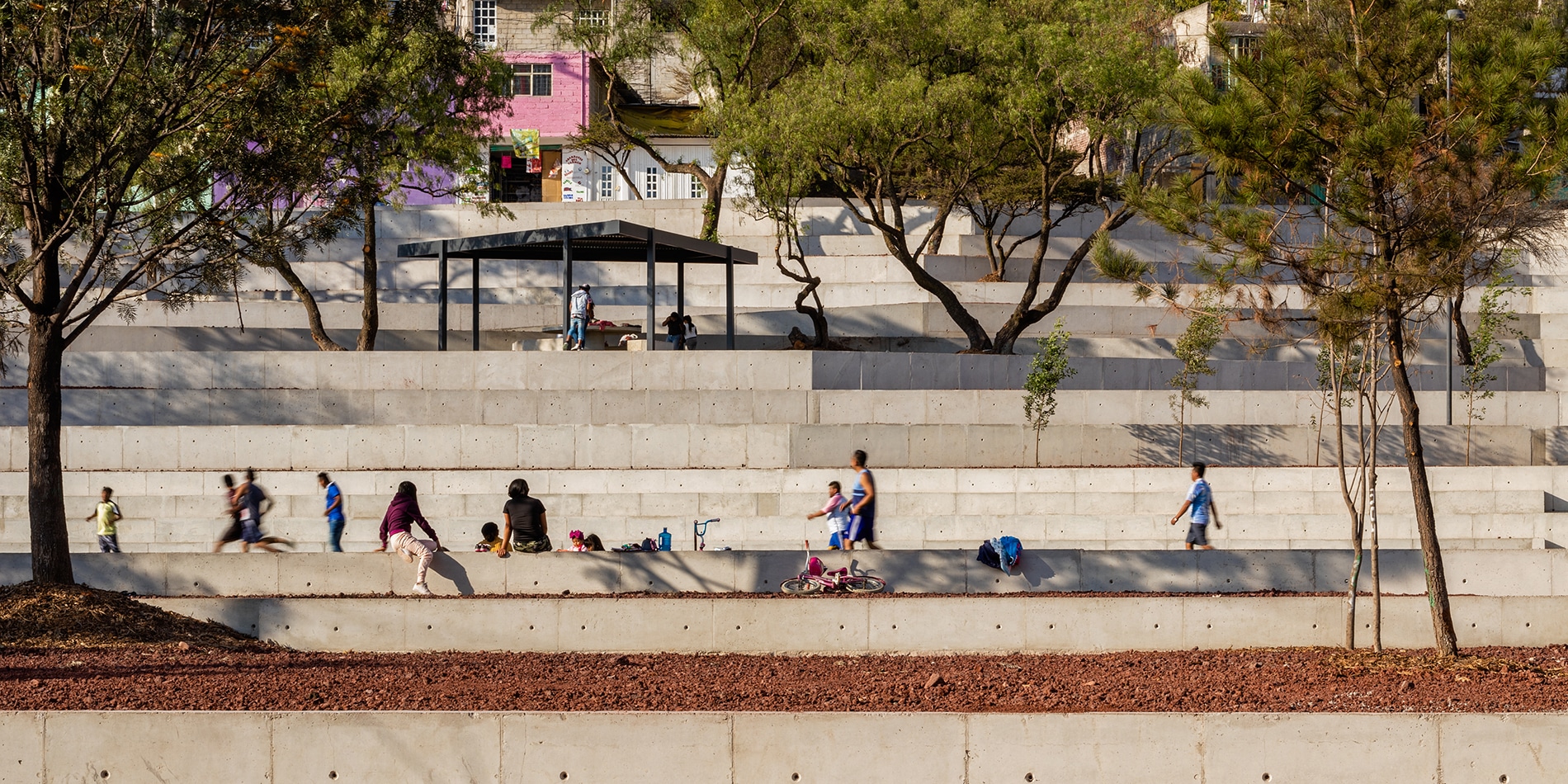 Su trabajo se inscribe en una realidad paradójica: en México, las ciudades enfrentan simultáneamente escasez de agua e inundaciones. Esta tensión se convierte en motor creativo: “Nuestro objetivo es restituir la presencia del agua en la ciudad, no como un elemento decorativo, sino como una estructura paisajística y urbana capaz de transformar los usos cotidianos”.