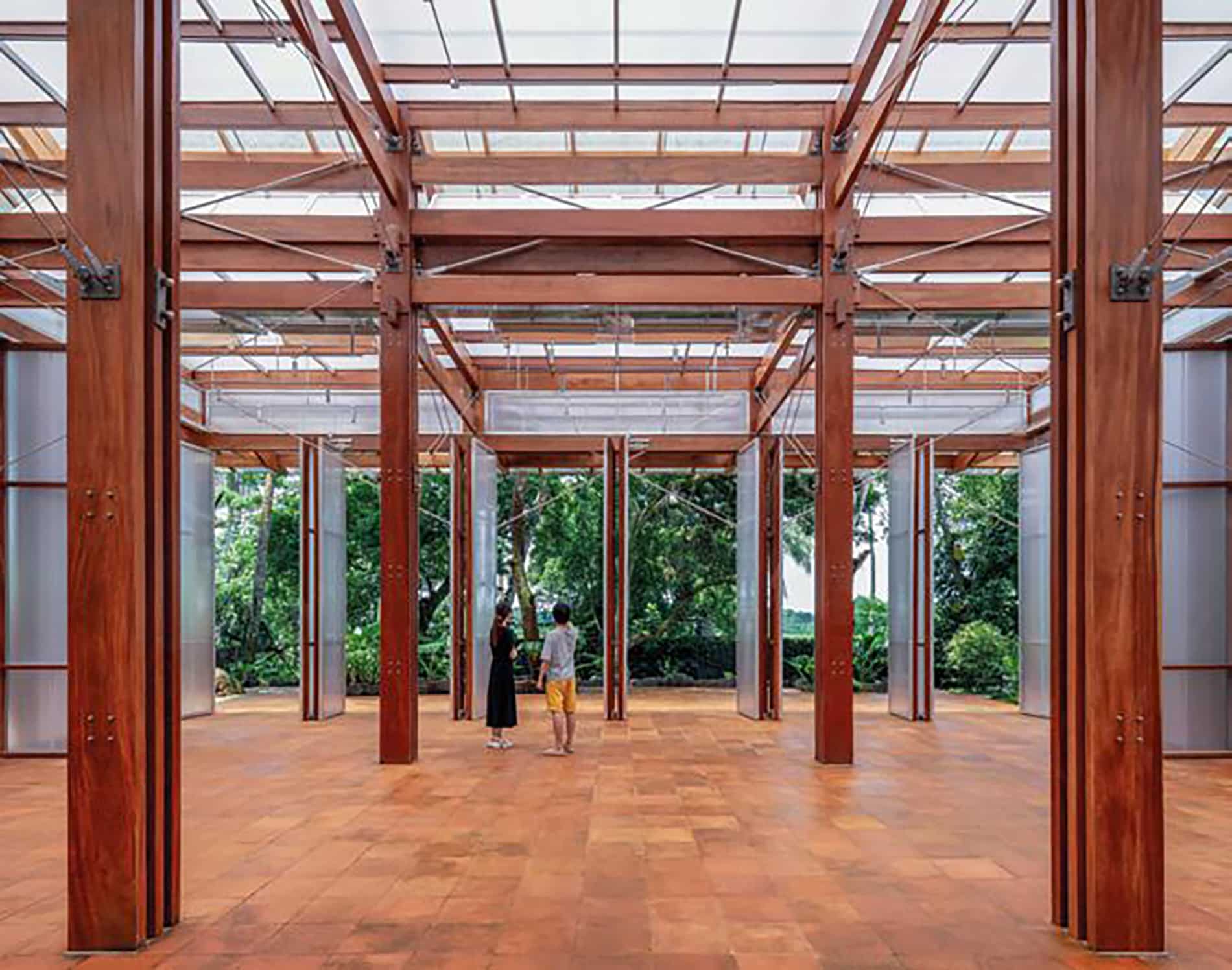 Su arquitectura busca simplificar, depurar y reducir el impacto ambiental reconectando con la sabiduría constructiva china: “Elegimos la madera como material constructivo basándonos en la relación simbiótica tradicional entre los seres humanos y los árboles”.