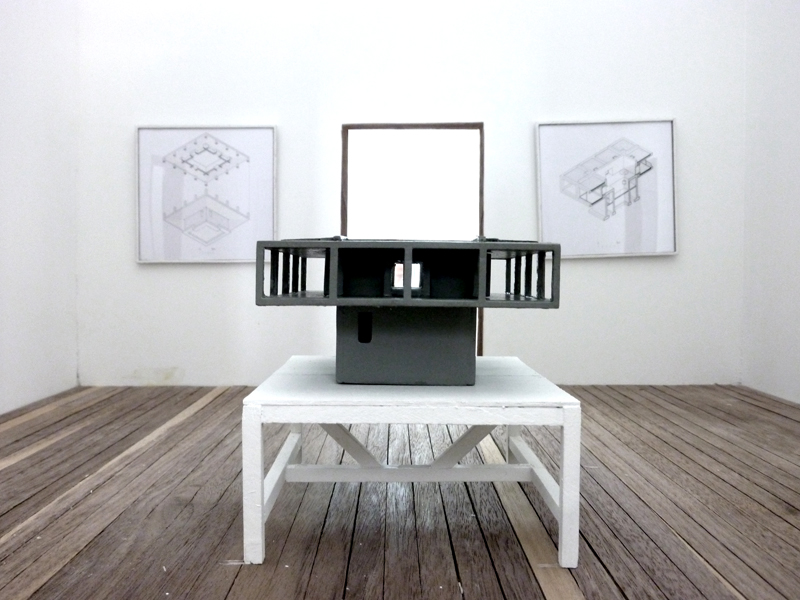 Mauricio Pezo: Nosotros la actividad que hacemos es construir proyectos entonces, una vez más asumimos la experiencia de la sala como un lugar dado para construir un nuevo edificio, una especie de máquina ideológica que nos sirva para concentrar lo que pensamos acerca de nuestra práctica y la arquitectura en general, es básicamente la construcción de un espacio, un museo ficticio que contiene 12 obras construidas o en construcción de nuestro estudio, dispuestas en una planta cuadrada con un circuito circular que permite desplegar la información a través de maquetas, fotografías y dibujos.
