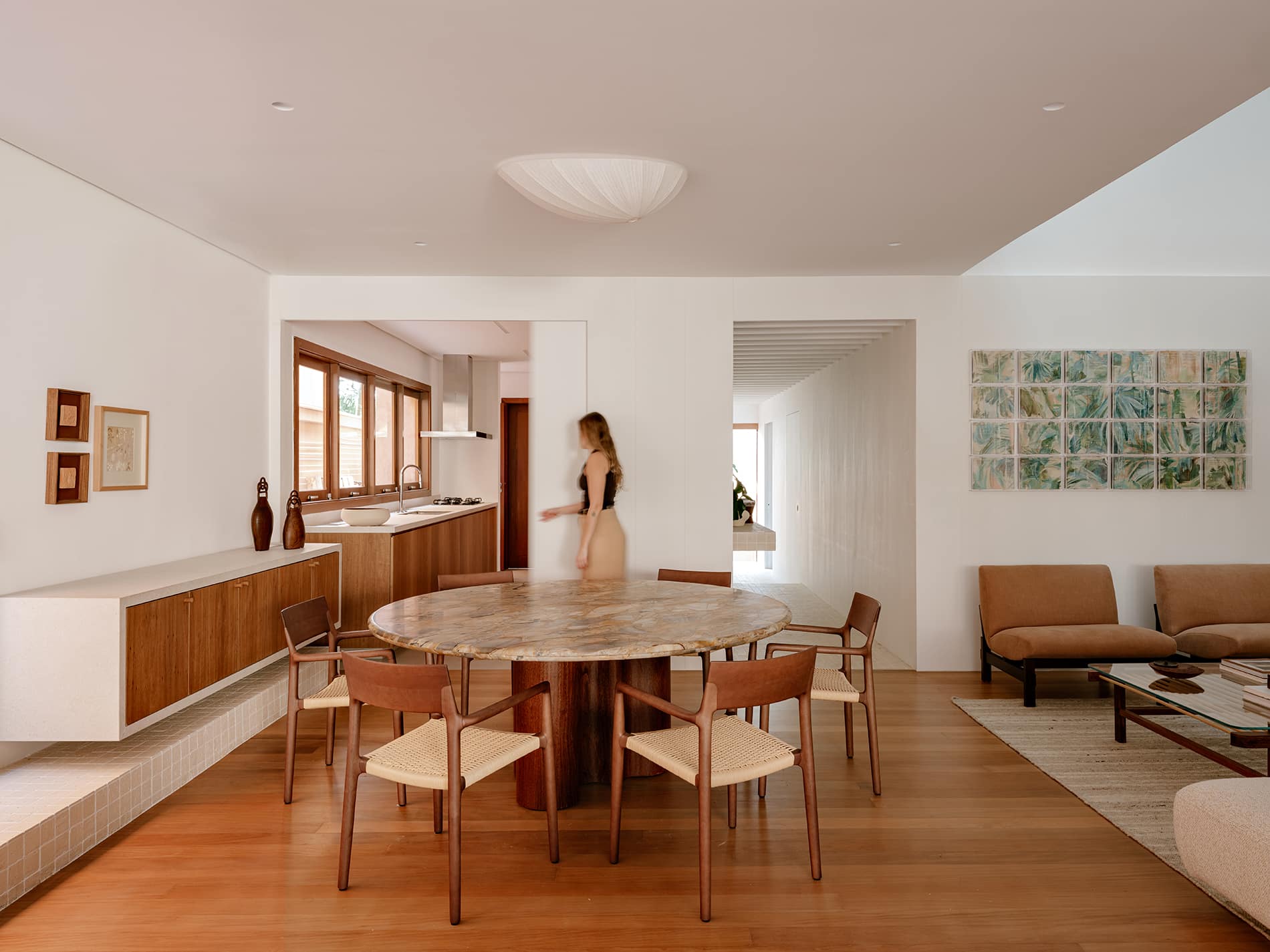 Al cruzar el umbral, la circulación fluye de manera natural: continua, intuitiva y sin fricciones. La reconfiguración espacial redefine la vida cotidiana, transformando áreas antes subutilizadas en escenarios activos para la convivencia familiar.