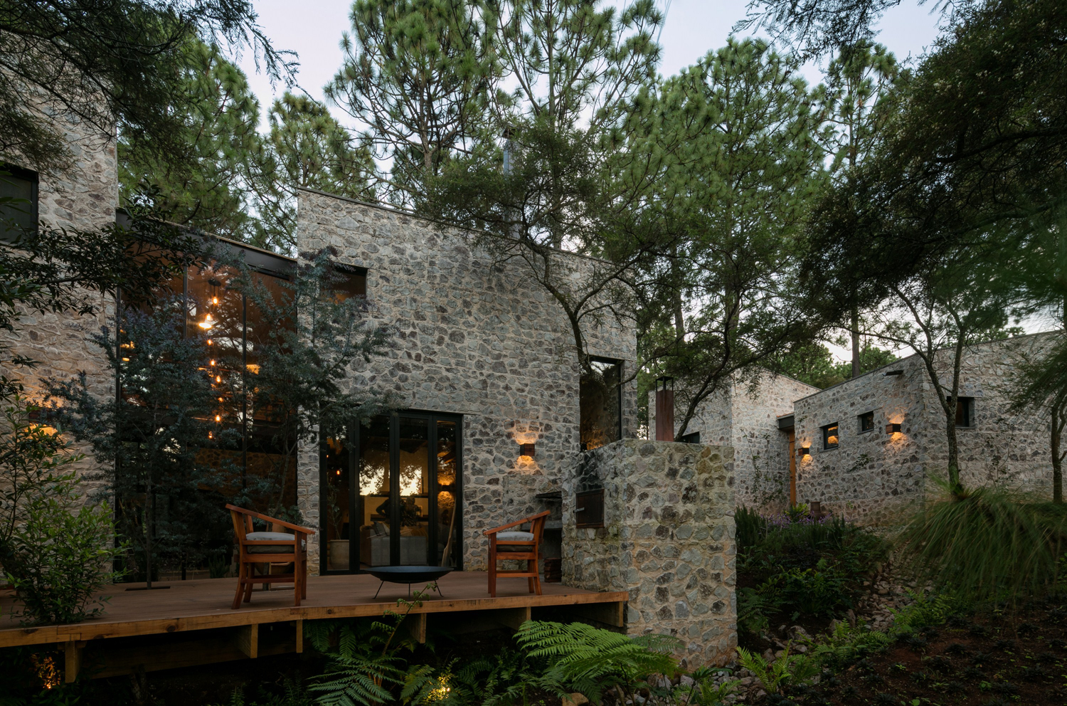 El objetivo principal era que la casa afectara lo menos posible el terreno, permitiendo al mismo tiempo estar en constante relación con el paisaje inmediato. Los arquitectos decidieron adaptarse a los elementos naturales del terreno, dividiendo el programa en diferentes volúmenes y ubicándolos alrededor de los pinos existentes.