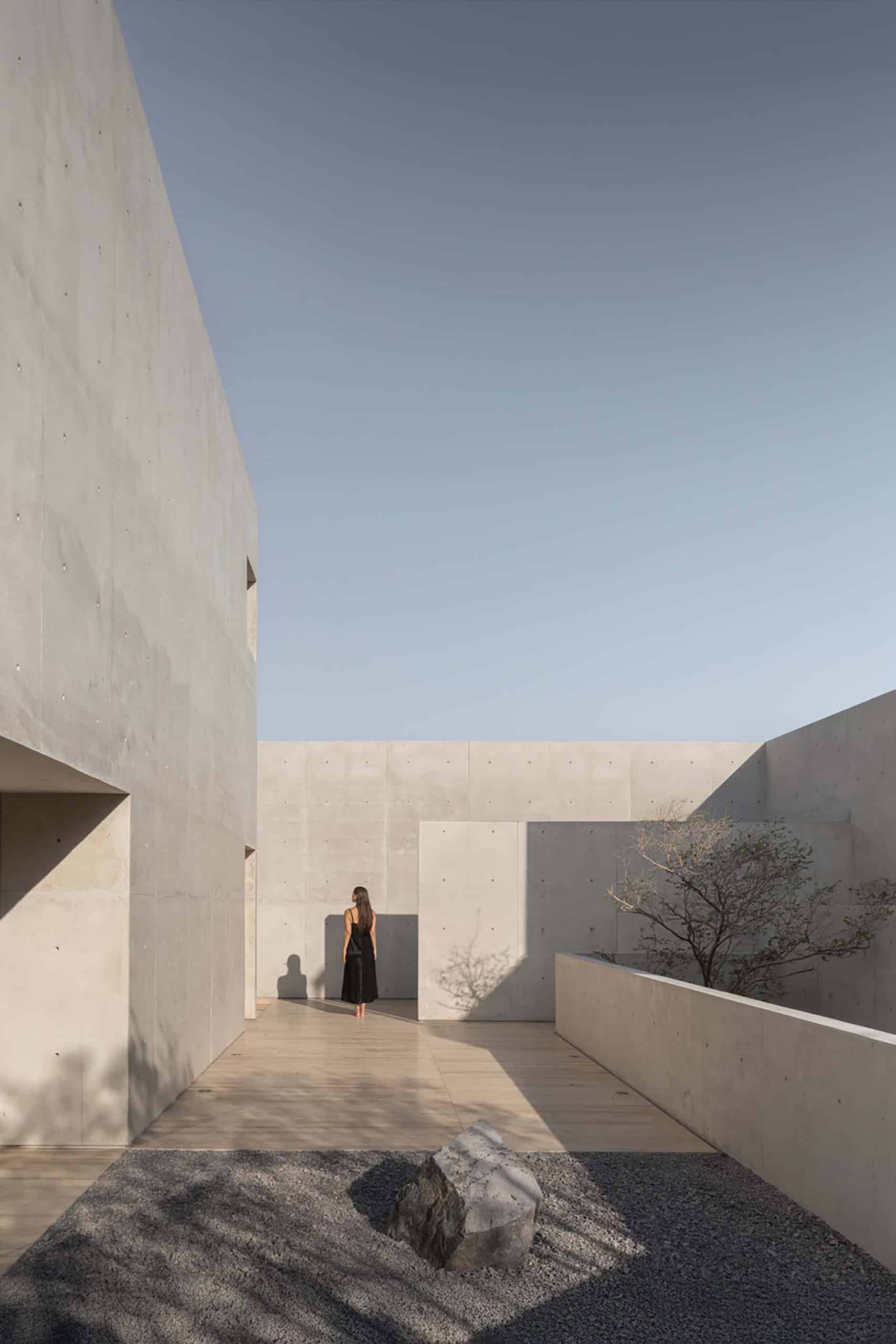 La materialidad fue una decisión inevitablemente táctil y sensorial. La blancura encandila bajo el sol costero, mientras que el concreto —pesado, honesto— absorbe la luz con delicadeza. Es un concreto que se vuelve cálido por el uso y por el tiempo. En esta materia la luz no rebota, se posa. Casa Tao es, en última instancia, una arquitectura nacida del deseo de habitar el mundo con mayor atención. Es una casa que se retira con discreción y ofrece sus espacios como atmósferas para la contemplación y la memoria. En ella, el habitar se vuelve una forma de estudio, de pausa, de gratitud. Cada rincón invita a estar, no a pasar y cada sombra es una promesa de bienestar. Esta búsqueda deliberada de la sombra, como refugio y como cualidad poética, nos acerca a una comprensión del espacio similar a la que Junichirō Tanizaki describe en El elogio de la sombra. Allí, Tanizaki no celebra la oscuridad como ausencia de luz, sino como un modo más sutil de verla.