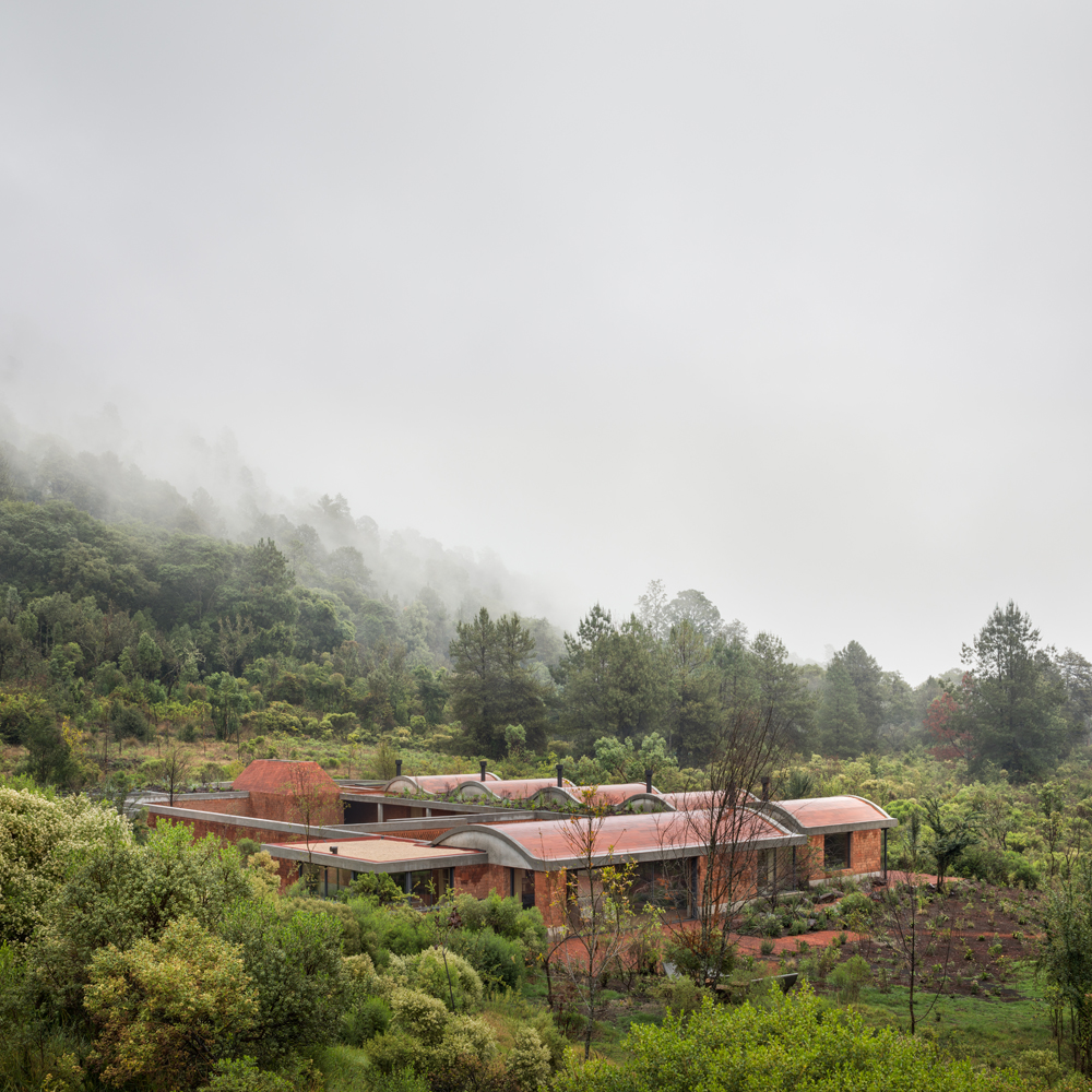 La casa se ubica en la planicie de una montaña a casi tres horas de la Ciudad de México y busca dos cosas aparentemente contradictorias: resguardo y apertura. Por un lado, busca ser un refugio ante el clima radical, que en un mismo día llega a variar casi 30 grados centígrados y donde llueve prácticamente a diario durante 6 meses, y, por otro lado, intenta abrirse lo más posible hacia un paisaje vasto.