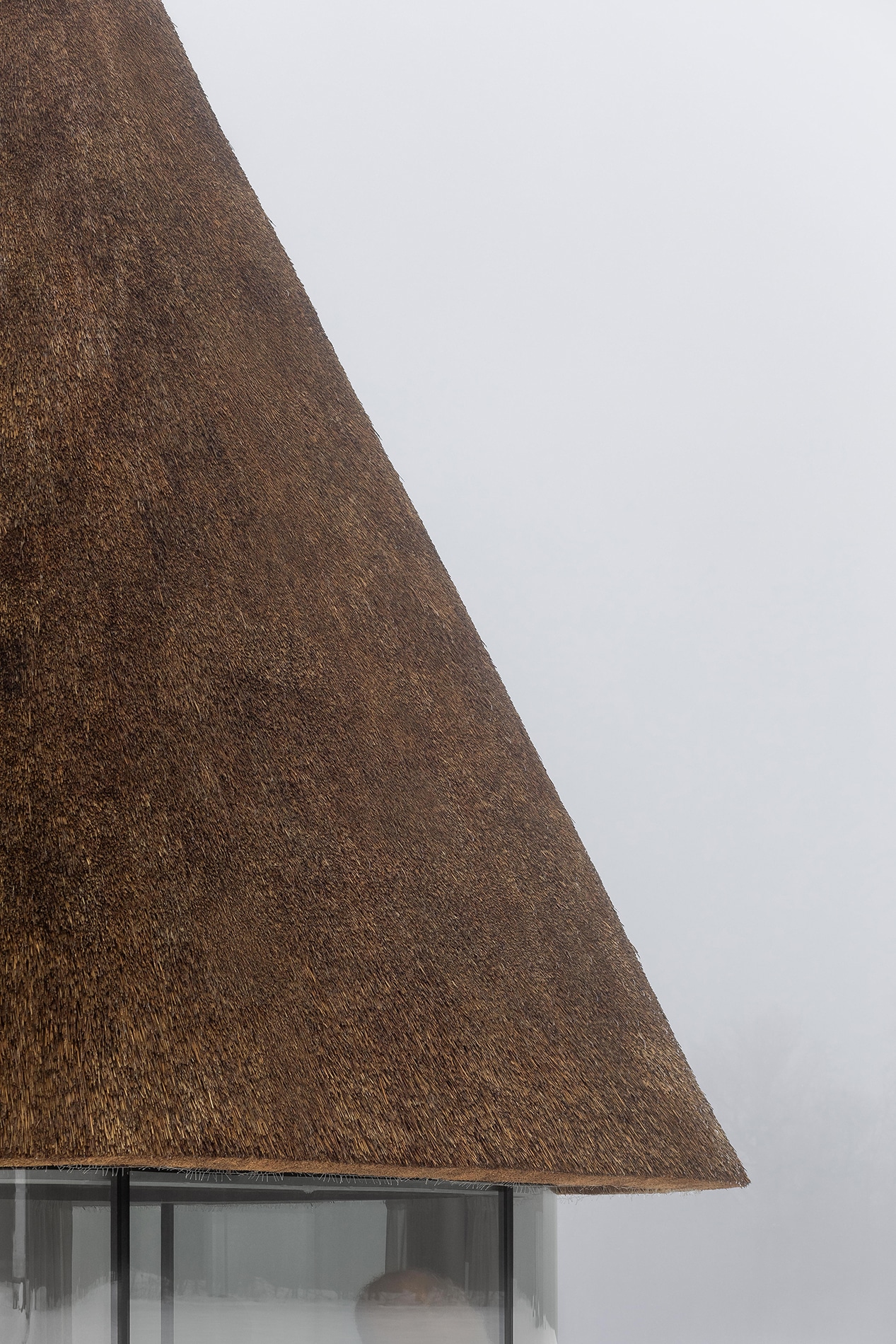 La arquitectura vernácula ucraniana evolucionó a partir de soluciones simples pero expresivas: muros gruesos encalados, cubiertas de paja y el revoque periódico como acto de cuidado y aspiración al orden y la belleza. En la interpretación contemporánea de YOD Group de la tradicional Hata-Mazanka, esta búsqueda de luz y limpieza se traduce en fachadas completamente acristaladas, mientras que la cubierta —deliberadamente sobredimensionada— se convierte en el principal gesto arquitectónico del proyecto.