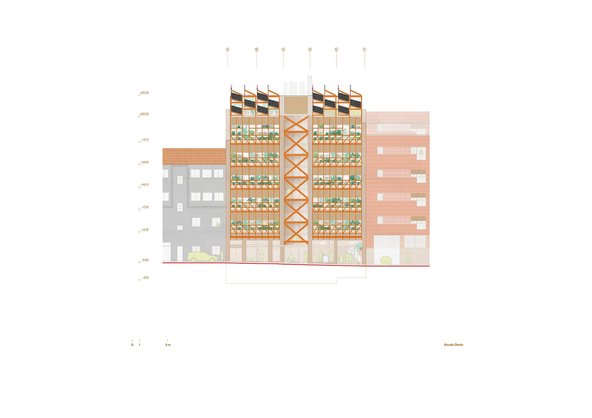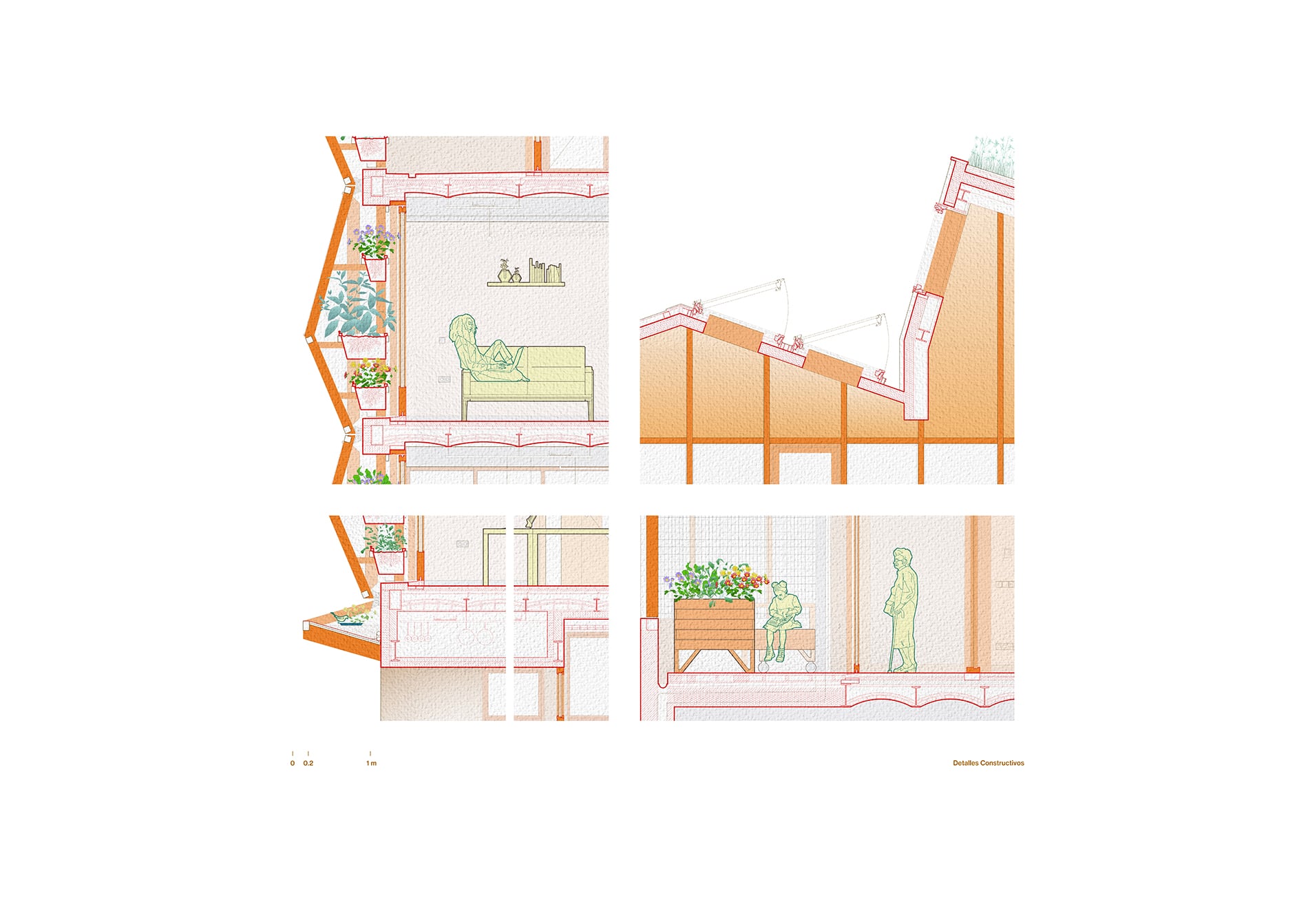 En un contexto de crisis climática, el proyecto aborda desafíos socioecológicos contemporáneos. Por un lado, desde la consideración de que cada detalle constructivo, prescripción material y estrategia espacial conlleva un compromiso ecológico con otros (humanos, más que humanos, generaciones futuras, presentes y pasadas, cuerpos diversos) a múltiples escalas, tanto espaciales como temporales. Por otro, que estos desafíos han de abordarse desde el deseo: el edificio afronta los retos ecológicos como una oportunidad para experimentar otros modos de convivir, de construir y de abrir otros imaginarios donde soñar futuros menos focalizados exclusivamente en lo humano.