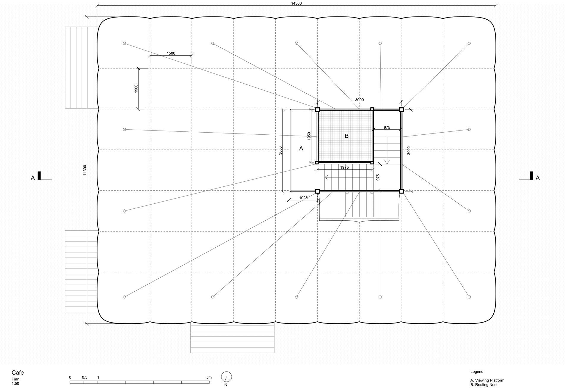 El contenedor, adaptado a partir de componentes estandarizados, aloja una compacta estación de café dentro de una torre de 3×3×8 metros. Sobre ella, una plataforma de observación —a la que solo se accede atravesando la nube— ofrece una vista privilegiada del paisaje de montañas y arrozales, reforzando la experiencia sensorial del lugar.
