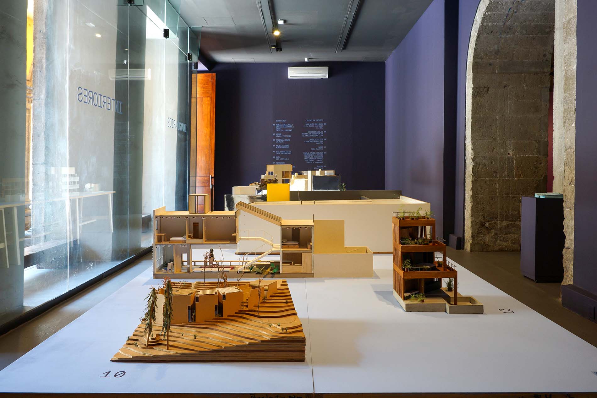 La proliferación de imágenes digitales en las redes sociales invita a pensar estos modelos físicos no como representaciones finales, sino como territorios de prueba: lugares desde los que explorar formas de habitar el presente. La muestra reúne catorce maquetas de estudios emergentes de Barcelona y de la Ciudad de México, que dialogan sobre diferencias y afinidades entre ambas urbes. Dispuestas horizontalmente encima de la mesa, invitan a descubrir conexiones más allá del origen de cada proyecto, todos ellos concebidos en relación con lo preexistente, ya sea mediante reformas, ampliaciones, instalaciones efímeras o nuevas viviendas.