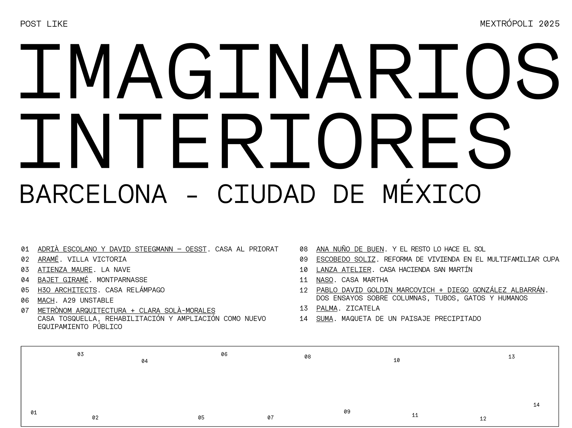 (Madrid, España, diciembre de 2023) y Panorama Barcelona en la Galería Aedes (Berlín, Alemania, julio de 2024)—, el marco del festival MEXTRÓPOLI 2025 ofrece la oportunidad de explorar un vínculo generacional intercontinental, no solo como espacio de encuentro, sino también como herramienta para tender puentes capaces de afrontar los retos que las ciudades y territorios enfrentarán en el futuro.