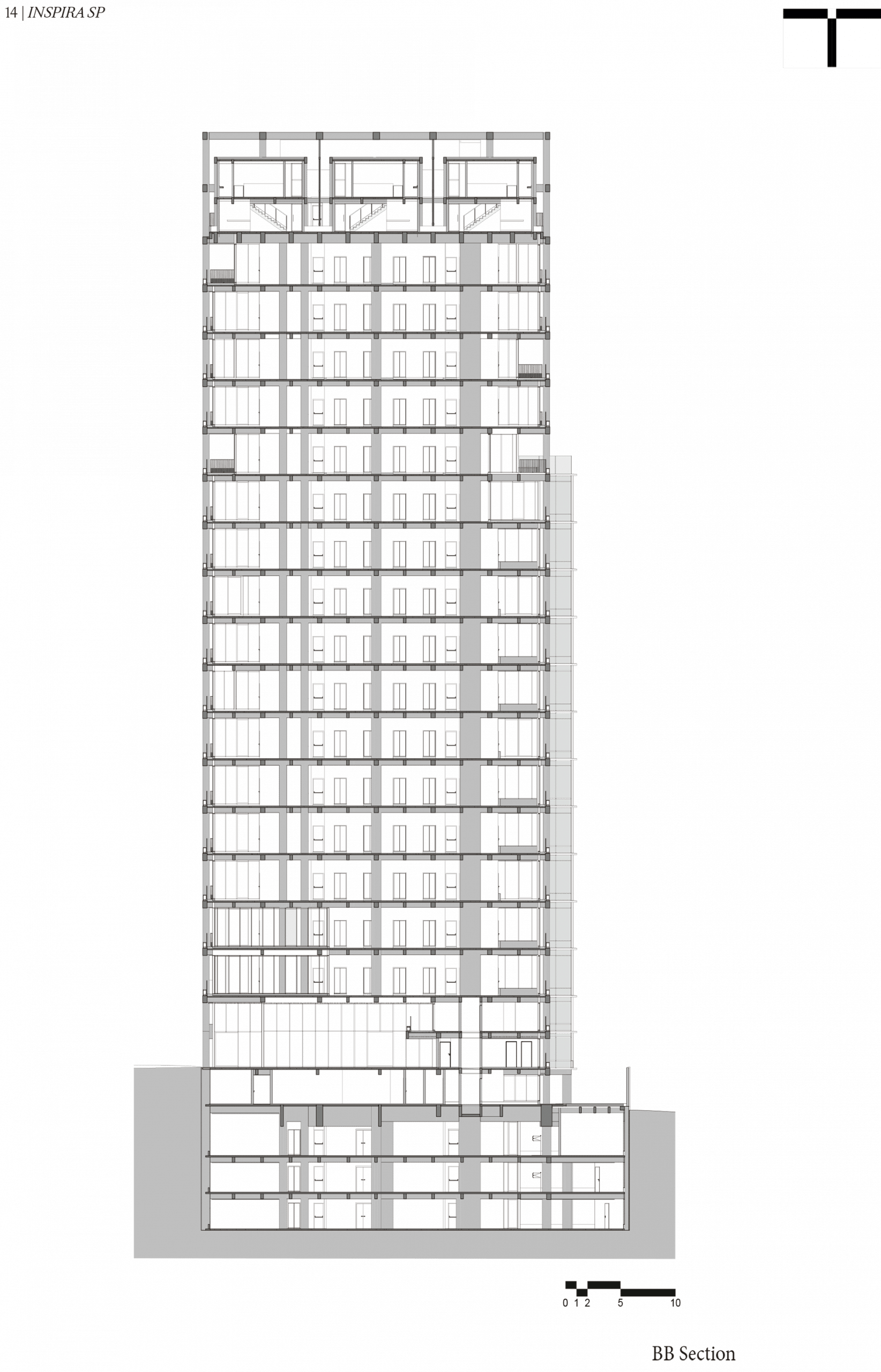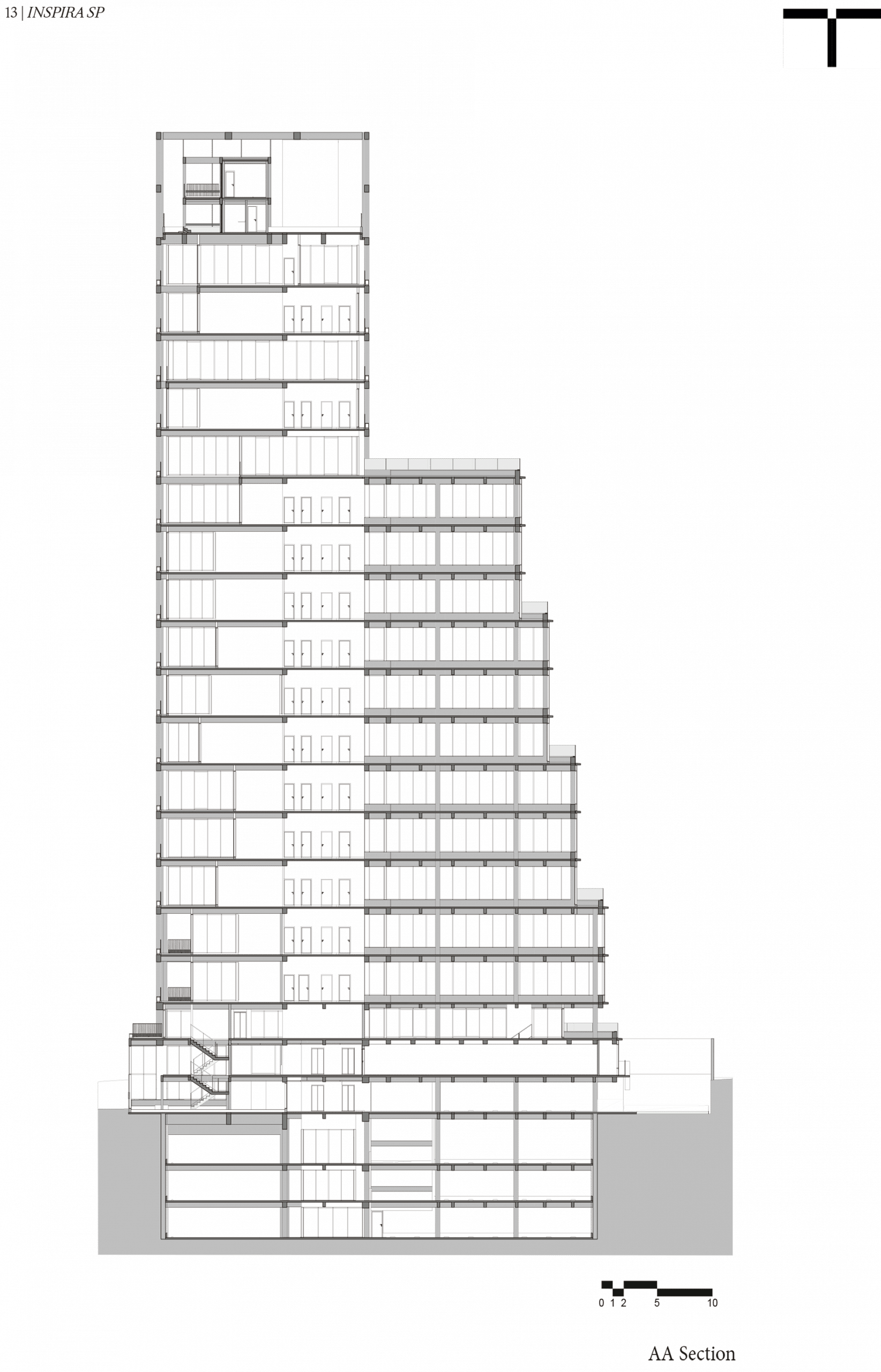 Más que un edificio, Inspira se plantea como una infraestructura verde. Un sistema continuo de jardineras, integrado directamente a la estructura de concreto, permite que la vegetación colonice el edificio y contradiga la geometría autoritaria de la retícula. Entre lo neutro y lo artificial, el verde se expande, recompone el bioma local y otorga a la torre una dimensión mutable y dinámica. El edificio se transforma así en un soporte activo para un paisaje cambiante, incorporando nuevas capas de uso, percepción y disfrute.