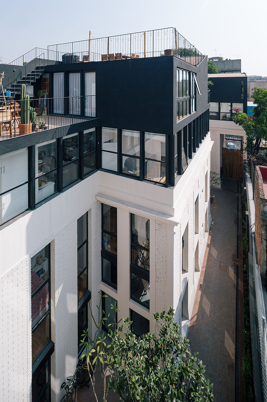 El proyecto se construye gracias a la iniciativa de la startup Reciclaje Urbano. La apuesta es alta: construir un edificio en una vivienda catalogada de valor histórico, sin garaje –en una ciudad donde el rey es el automóvil—, y con comercio en planta baja, condición asociada comúnmente en México a una forzada combinación para las clases bajas y no como un elemento indispensable para construir calidad urbana.