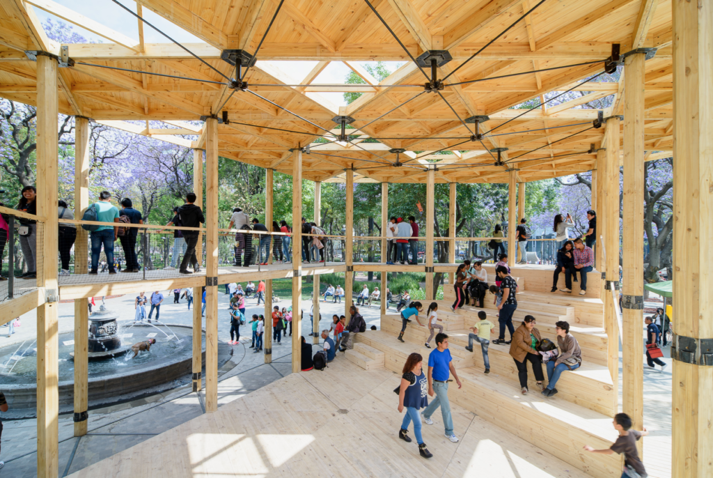 Desde su primera edición,MEXTRÓPOLI, Festival Internacional de Arquitectura y Ciudad, ha buscado distintas maneras de reflexionar sobre el espacio público pero también de intervenir en él. Conferencias y mesas de discusión, pero también exposiciones, derivas y paseos, y, por supuesto, pabellones. Estos pabellones han servido para experimentar y también para tomar posición, literal y metafóricamente. Muchos han sido casos exitosos y otros, sin duda, experimentos fallidos que no por eso fracasos. En su edición de 2016, MEXTRÓPOLI tuvo su primer pabellón oficial resultado de un concurso internacional. Este año el segundo pabellón MEXTRÓPOLI, seleccionado entre más de 190 propuestas, ocupó otra vez un espacio dentro de la Alameda Central, en el Centro Histórico de la Ciudad de México. Los dos pabellones MEXTRÓPOLI fueron vistos, visitados y usados por miles de personas. En general, fueron bien recibidos aunque ninguno estuvo exento de cierta polémica: que si una larga mesa es un pabellón o no, o que si es momento de construir muros y reforzar lo que algunos ven como estereotipos. La discusión no se cierra con el desmontaje de esos pabellones. Al contrario. Esperamos nos sirvan, éstos y los que vienen, para explorar soluciones formales, espaciales y constructivas, así como para intensificar el uso del espacio público, pero también para interrogarnos y cuestionarnos acerca de las ideas con las que construimos y pensamos la arquitectura y la ciudad. Van aquí, en una primera y breve presentación, de algunos de los dieciocho pabellones que este año fueron parte de MEXTRÓPOLI.