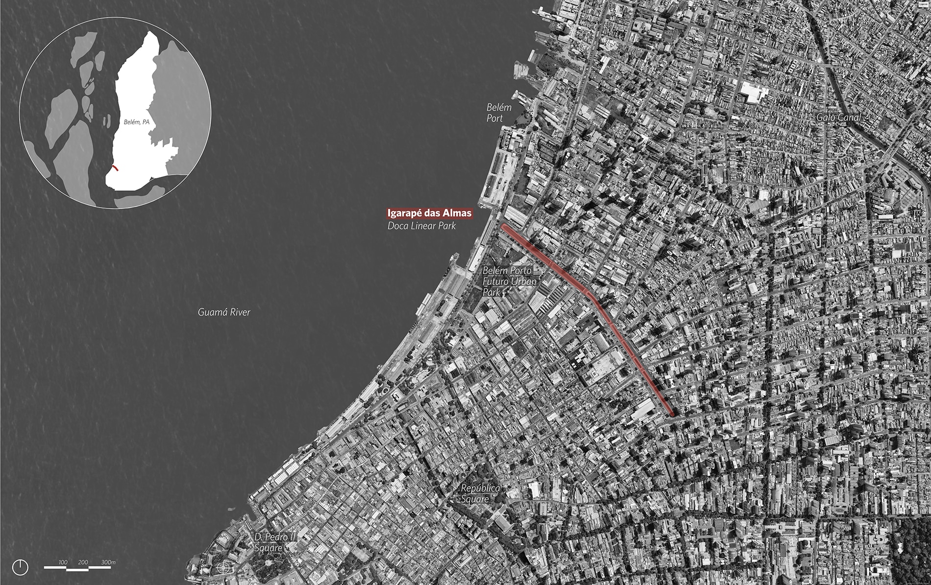 Belém, construida sobre una red de ríos e igarapés, ha visto su paisaje natural interrumpido por sucesivas intervenciones que borraron la presencia del agua de la vida urbana cotidiana, siguiendo una lógica poco responsable, repetidamente aplicada en las metrópolis brasileñas. Anteriormente marcado por la ausencia de espacios públicos, el predominio del automóvil y una baja calidad ambiental, el entorno del canal carecía de sombra, permeabilidad y oportunidades de interacción social.
