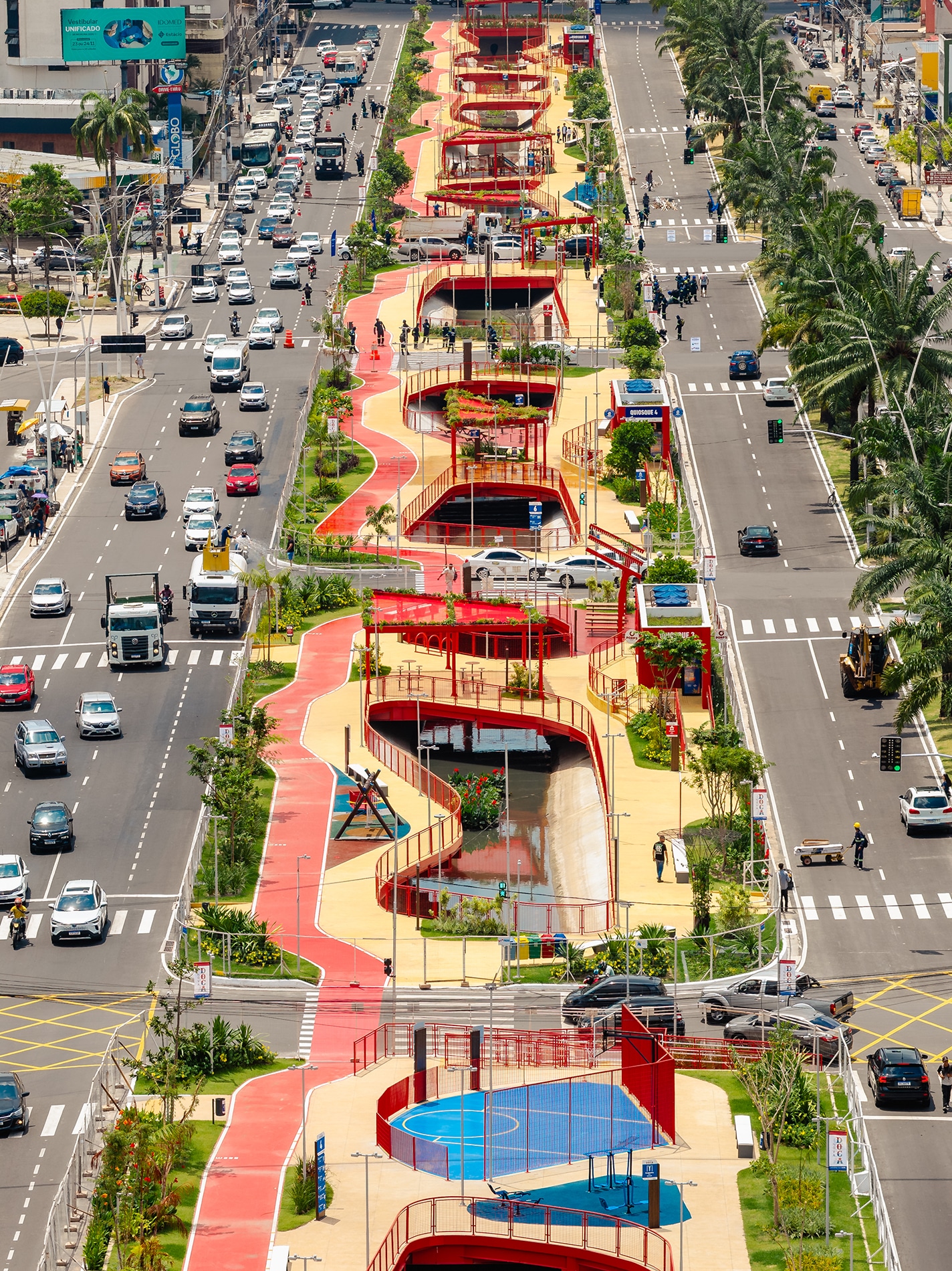 Con la llegada de la COP30, el Parque Lineal Doca asume el papel de uno de los principales legados urbanos del evento. El proyecto propone la reconciliación entre ciudad y naturaleza, transformando el corredor hídrico en un parque continuo, accesible y multifuncional. Al ampliar la infraestructura verde, recalificar el paisaje y poner en valor la memoria del agua, el parque se consolida como un espacio de encuentro, ocio, deporte y contemplación, devolviendo a los habitantes la experiencia de vivir cerca de sus cursos de agua.