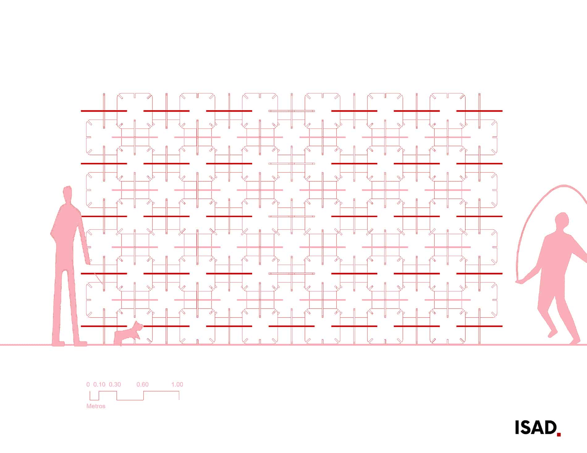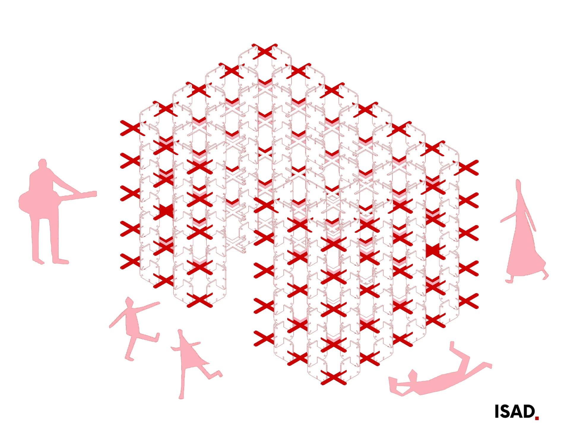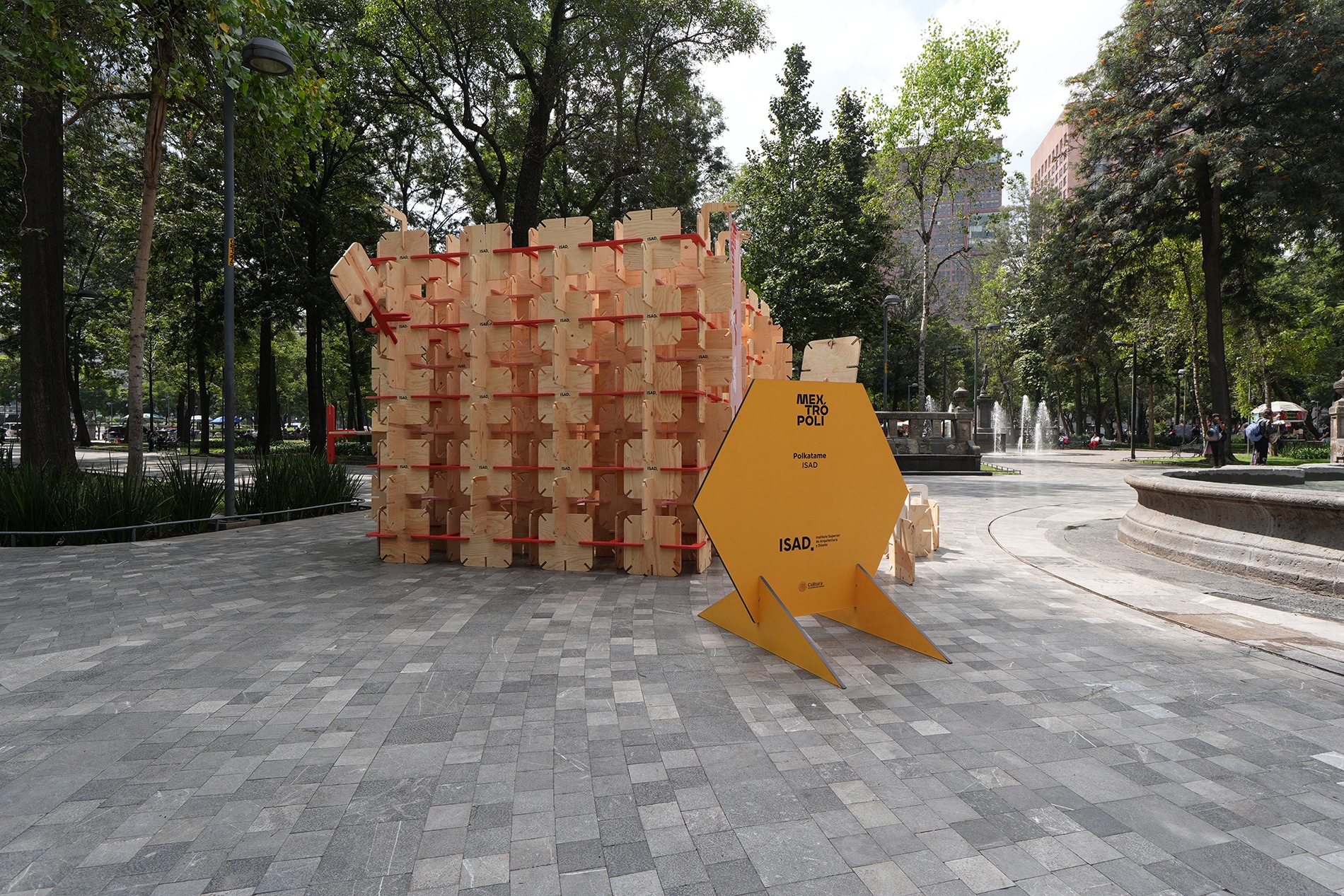 El pabellón Polkatame, diseñado por estudiantes del ISAD en Chihuahua, tomó como punto de partida la polka, una danza tradicional profundamente arraigada en el norte de México y reinterpretada a lo largo del tiempo bajo la influencia de la música norteña. Esta expresión cultural —dinámica, festiva y colectiva— ofreció el marco conceptual para el desarrollo del proyecto.
