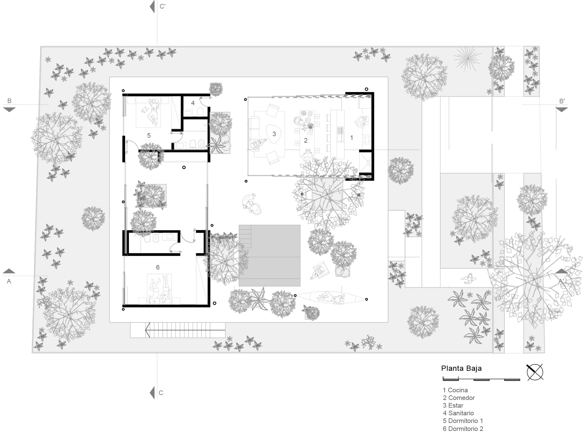 Un Bosque en la Casa propone un enfoque alternativo para armonizar la forma construida con su entorno natural. En lugar de tratar los árboles existentes como obstáculos, el proyecto los asume como guías fundamentales que dan forma al programa espacial.