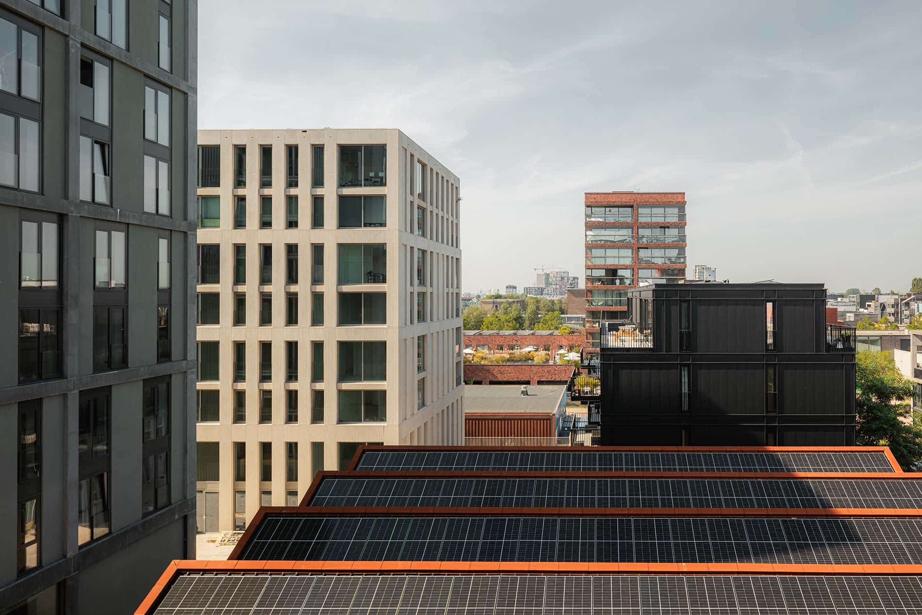 Cada edificio tiene así su propia historia, estructura, función, forma y acabado de fachada sostenible, lo que permite que puedan adaptarse de manera independiente en función, distribución y expresión. La mayoría de los edificios son flexiblemente divisibles gracias a la separación entre estructura y acabados, los grandes claros, techos altos, ventanas amplias y sistemas de materiales desmontables (lo que MKA (Marc Koehler Architects denomina Open Buildings y Open Systems). De este modo, “crecen” con el tiempo y duran más, lo que probablemente se traduzca en una reducción significativa de demoliciones y residuos de construcción en el futuro. La arquitectura circular y social, atemporal, que resulta de este enfoque —y que MKA (Marc Koehler Architects) promueve— se inspira en el llamado Open Building Concept, un movimiento fundado por el fallecido John Habraken en la década de 1960.
