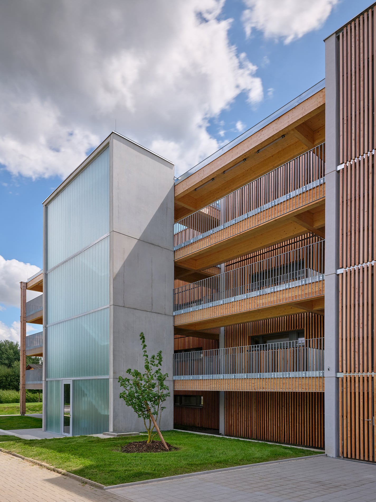 Los edificios figuran entre los primeros proyectos residenciales de varios niveles construidos en madera en la República Checa y constituyen un ejemplo de vivienda de alquiler accesible.