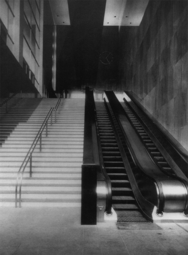 Terminado en 1932 –el mismo año que el Empire State Building de Nueva York- el edificio para la Philadelphia Saving Fund Society (PSFS) fue la primera gran obra en los Estados Unidos construida de acuerdo a los principios de la vanguardia europea. Ubicado sobre Market Street, a dos cuadras de la alcaldía de Filadelfia, el PSFS era el edificio sede de un banco local que tuvo un papel central en la recuperación de la ciudad durante la depresión económica mundial. Sus arquitectos fueron George Howe y William Lescaze, el primero educado en la conservadora escuela de arquitectura de la Universidad de Pensilvania, el segundo un joven inmigrante suizo salido de la más progresista ETH de Zurich. Conjuntando sus habilidades e intereses teóricos, Howe y Lescaze proyectaron un edificio que si bien reúne el gusto académico por los materiales lujosos y una cierta estética streamline posee una configuración urbana y espacial netamente moderna. Cuando Le Corbusier visitó los Estados Unidos en 1935 y criticó los rascacielos neoyorquinos por su ornamentación, aglomeración y “pequeñez” uno de los pocos edificios elogiados por él fue precisamente el PSFS. En su simplicidad formal y complejidad programática, el PSFS se ajustaba a la tipología de “rascacielos cartesiano” propuesto por Le Corbusier en su Ciudad Radiante [1].