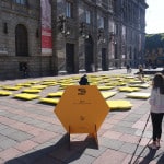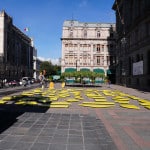 Un anillo de nueve metros de diámetro conformado por ramas recién podadas parece flotar a tres metros de altura a un lado de la Plaza Manuel Tolsá en el Centro Histórico de la Ciudad de México. El único espacio de sombra en toda la plaza.