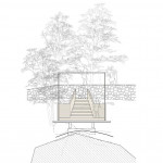 El terreno rocoso donde se ubica el mirador era antiguamente accesible a través de un sendero forestal que descendía desde la carretera. Sin embargo, con el paso del tiempo, los alrededores fueron acumulando residuos de las cabañas cercanas y una valla bloqueó el acceso, volviéndolo prácticamente inaccesible. En la cima de la pendiente, cerca del mirador, se encuentra una casa familiar construida a inicios del siglo XX. Su jardín se extiende sin barreras hacia el promontorio, fusionándose con el paisaje. El propietario de la casa, con quien el equipo de diseño ya había trabajado en modificaciones previas, buscaba recuperar el acceso a este punto de observación privilegiado del valle, un espacio para contemplar la naturaleza en estado puro.