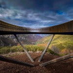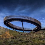 La accesibilidad desde el camino es total, lo que permite a personas con movilidad reducida experimentar la sensación de vacío en la inmensidad del valle, en un entorno natural al que, habitualmente, tienen limitado el acceso. Cómo debía colocarse sobre el terreno fue un punto que generó una cierta preocupación en el equipo de proyecto que intervino en el desarrollo de la propuesta. Buscando un mínimo impacto se optó por realizar una estructura en pirámide invertida formada por cuatro pilares que sustentan el tramo elíptico de la construcción y que sólo se apoyan en un punto en el terreno, lo que minimiza el contacto. Con unos pequeños muros de contención que permiten el apoyo de los tramos rectos y un pilar situado en el cruce central se asegura la estructura del mirador con un impacto mínimo sobre el entorno.
