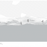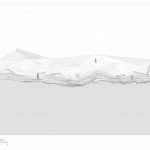 La catenaria es una forma geométrica de carácter libre, difícil de expresar y matemáticamente compleja en su descripción. Pabellón Horizonte se describe como una catenaria que se sujeta en el vacío cuya geometría inversa y compresión en el centro genera una abertura, derivando en 2 espacios paralelos habitables que forman el recorrido para los visitantes. El pabellón resalta su condición geométrica de liviandad, buscando habitar la concavidad y los espacios inferiores que la definen. Es un umbral simbólico que se extiende al horizonte, un artefacto que alza vuelo entre lomas, ciudad y río.
